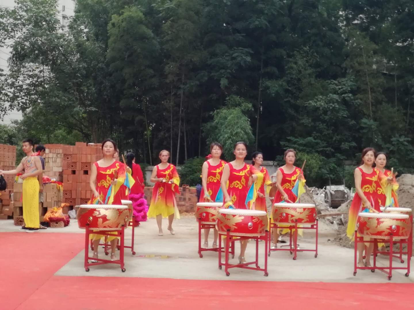 上午9时30分,在威风的锣鼓声中,前来参加封顶仪式的有关领导沿着红地毯搭乘电梯步入封顶会场,仪式在欢快的音乐声中正式开始。